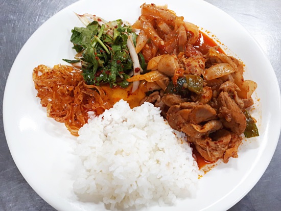 정통 한식스타일의 닭볶음탕과 명태포무침 그리고 샐러드입니다.